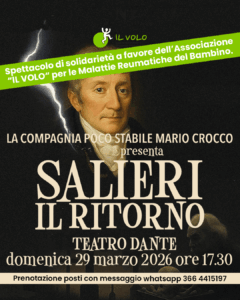 Domenica 29 marzo vi aspettiamo al Teatro Dante di San Pietro di Legnago per lo spettacolo di beneficenza “SALIERI IL RITORNO”, presentato dalla Compagnia Poco